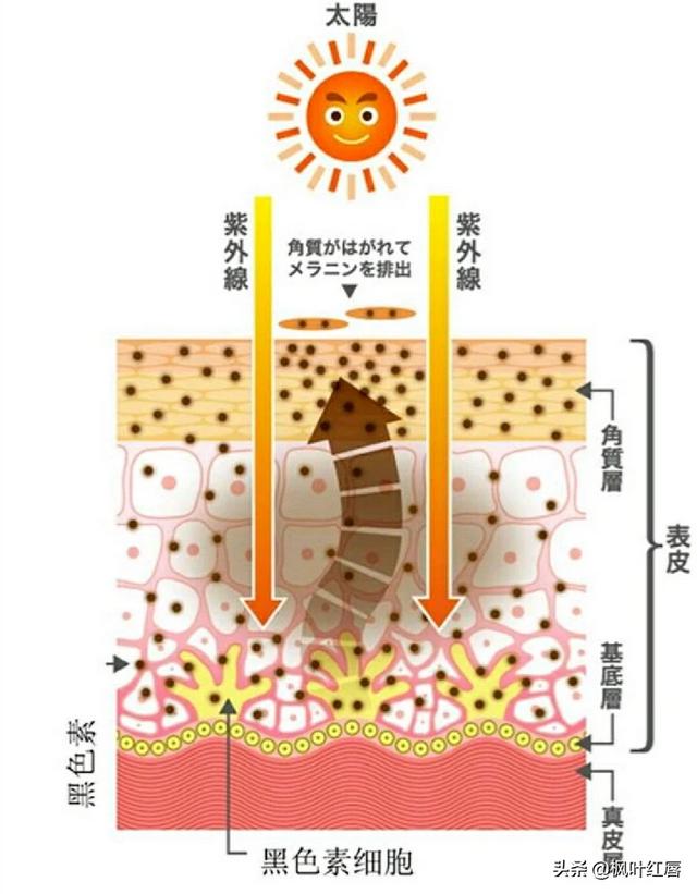 太陽の紫外線を浴びすぎたり、大気環境が汚染されたりすると、次のようなことが起こる。暗黄皮膚は再び多くのものを作り出す。酸化フリーラジカル、大量のメラニン粒子を放出し、皮膚はますます黒くなる。