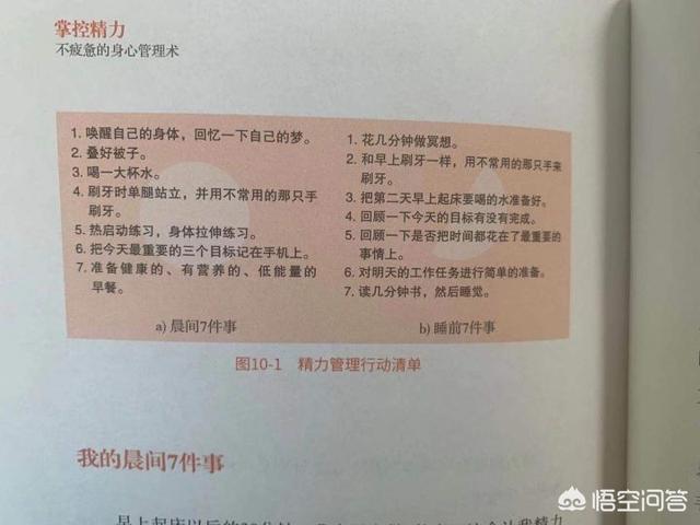 別の例としては、エネルギー管理のための行動リストがある。「朝にやる7つのこと」と「寝る前にやる7つのこと」だ。自分の行動リストを完成させると、1日の始まりと終わりの儀式を意識できるようになる。