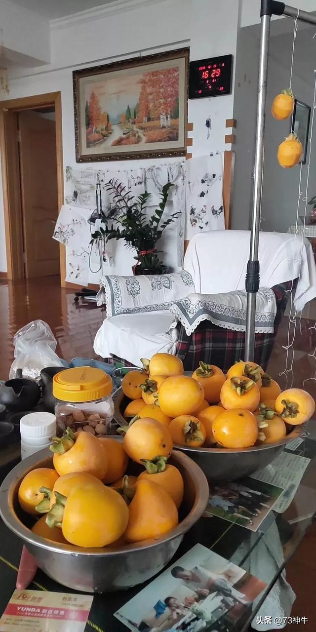 北国ではこの時期、柿が出回るが、柿の木は虫が少なく、薬を飲む必要もないため、基本的には景観樹として植えられる。柿は晩秋に熟すので、熟した柿は木にぶら下がっている葉から落ちる赤い特に見栄えの良い、 "すべてがそれがあるべきように "の調和の意味なので、多くの農村の家は柿の木を植えるのが好きです。