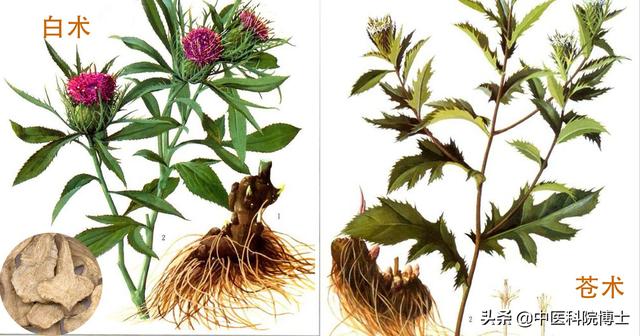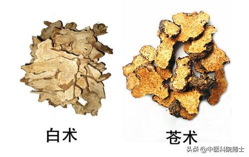 だから、もし脾臓不足が主な懸念事項で、Atractylodes macrocephalaを好む。脾臓を強化する役割を果たす;湿気が多い場合は、蒼朮を使う。(落とす脾虚湿証の場合を検討してもよいだろう。Atractylodes macrocephalaとatractylodes macrocephalaは併用される。。
