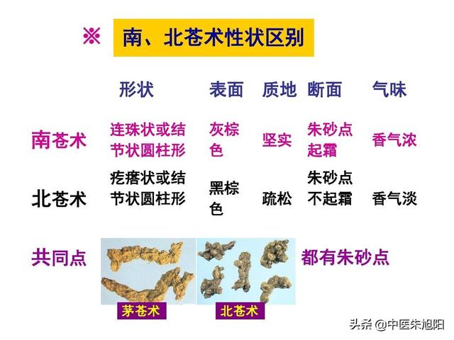 蒼朮はより粗く、より衝動的で、より切迫し、芳香があり、より乾燥しているので、蒼朮は主に脾胃を温めるのに用いられ、中脘の痰湿が重いときは、蒼朮は中脘を温め、湿を芳香するのに用いられる。
