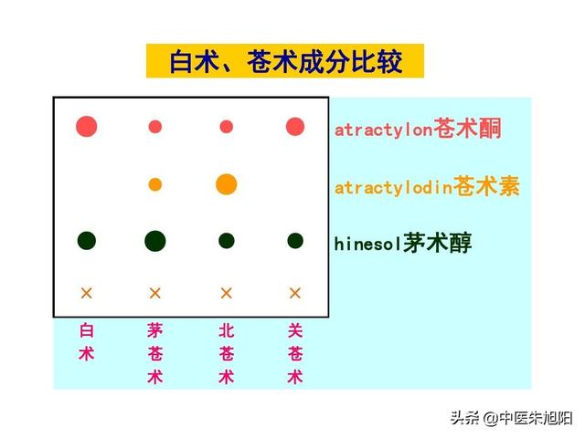 要約するとアトラクチロデス・マクロセファラ(Atractylodes macrocephala)は脾気を補う第一の薬であり,アトラクチロデス・マクロセファラ(Atractylodes macrocephala)は湿薬の中の湿を乾かす第一の薬である。 アトラクチロデス・マクロセファラ(Atractylodes macrocephala)はアトラクチロデス・マクロセファラ(Atractylodes macrocephala)よりも脾気を補う作用が強く,アトラクチロデス・マクロセファラ(Atractylodes macrocephala)は湿を乾かす作用が強い。脾が弱い場合はアトラクチロデスマクロセファラを用い、湿が主な原因の場合はアトラクチロデスマクロセファラを用いる。。