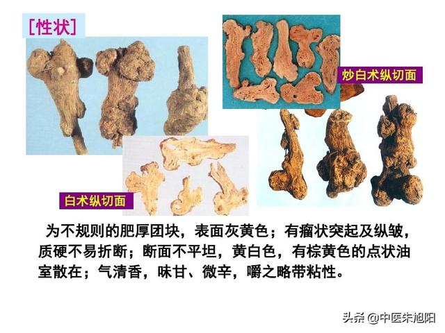アトラクチロデス(Atractylodes macrocephala)は、苦味と甘味があり、主に脾を強め気を益し、脾を補う要薬で、脾虚湿・部分虚に適用する;
