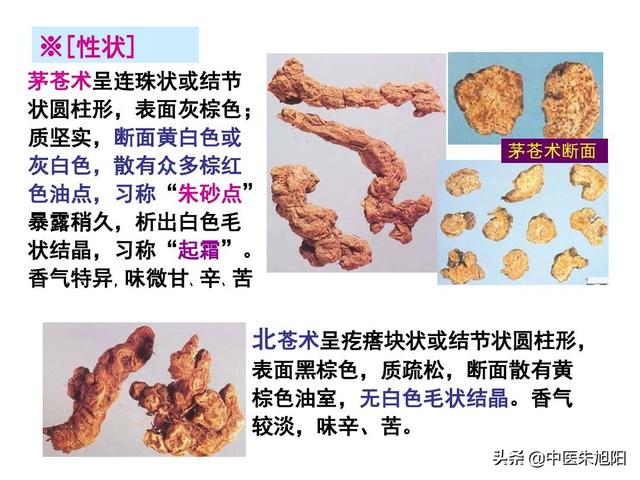II.蒼朮はキク科の植物の根茎を乾燥させたものである。 蒼朮または北蒼朮はキク科の多年生草本植物で、紅藜、馬藜、青藜、仙藜などとも呼ばれる。蒼朮は主に江蘇省、湖北省、河南省などで生産され、北藏朮は主に華北、華西北で生産される。 春と秋に根茎を掘り、土砂と根を取り除いて乾燥させ、スライスする。