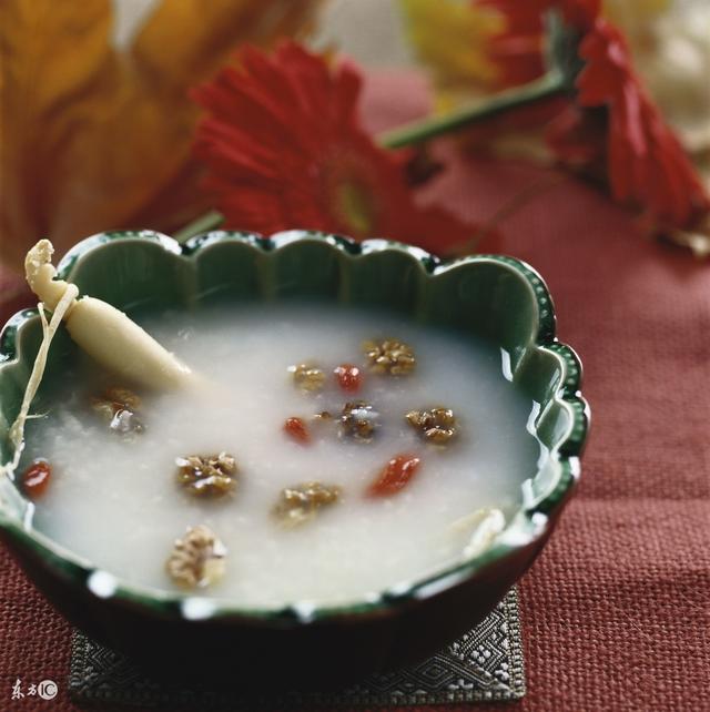 クルミ50グラム(砕く)、丸粒米100グラムを取り、水を加えて粥にする。クルミは腎臓や脳、咳や喘息に効果があり、冬によくある喘息食であり、神経衰弱や物忘れによる不眠症や腰痛、膝の冷え、白髪、頻尿、残尿感などにも効果がある。このお粥を食べて、脳を健康にし、人生の役割を長持ちさせましょう。