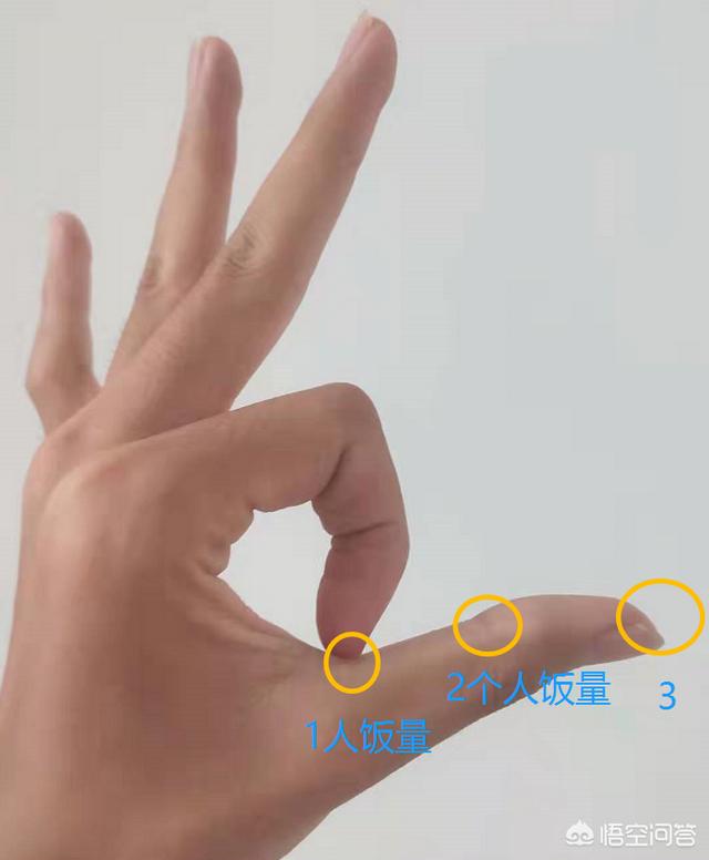 親指の付け根の関節で人差し指の先をつまむと、一人分の麺の量になる。