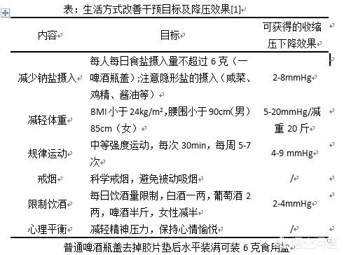 高血圧患者の最初の測定では、さらに数日間、異なる時間に継続的に測定することをお勧めします。血圧が正常値の上限である140/90mmHgより高いが、160/100mmHgより低い場合は、まず降圧剤を食べることができない、血圧の上昇の理由を見つけ、生活習慣の改善を通じて血圧を下げる、各生活習慣の改善に対する血圧の低下レベルは、表に示されています。