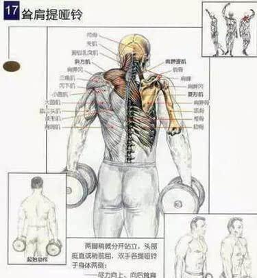 1.と同じエッセンスをシュラッグ。運動は、足を離して、前傾姿勢の身体と地面が平行を維持するために、両手でバーベルやダンベルを保持し、脚の前にぶら下がって、2つの肩の筋肉が完全にダウンしてリラックスして、その後、菱形筋、三角筋、力の背中の上部の筋肉群に、2つの肩が上向きに最高位置まで肩をすくめるように、復元するために2つの肩をゆっくりとリラックスダウンさせるために短いポーズ。