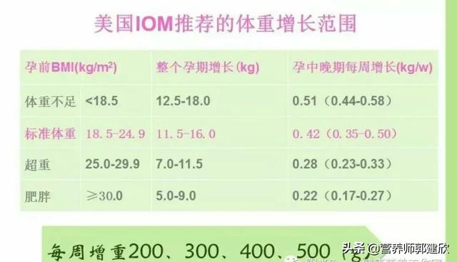 妊娠後期の体重増加は1週間あたり0.5kgでコントロールするのがよく、妊娠前の体重が比較的大きかったり、妊娠初期の体重増加が比較的大きかったりする場合は、1週間のコントロール量を適切に減らすことができる。