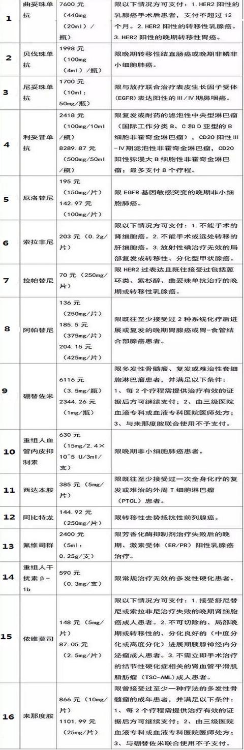 国家医療改革に伴い、今年、保健部門は研究に基づいて、いくつかの非常に成熟した標的薬を徐々に国民健康保険に組み入れるようになり、製薬会社との交渉の末、価格が大幅に下方調整され、現在、過去に高額だった標的薬の多くが次々と各地の健康保険の償還対象になっている。例えば、HER-2陽性乳がん患者、体重約75キロ、ハーセプチン+化学療法を適用する必要があり、1回の治療コースはほぼ1、1約23,000ほどで、過去の慈善贈与政策によると、6を買って6を得るために、まだ6を買う必要がある場合は12を得るために、この種の薬の光の下の患者の治療は、自分のポケットから1500万〜3000万を支払う必要があります。そして今、約7600元の価格は、20コースの治療でも、10%の自己負担の計算によると、自己負担は1万点以上になります。