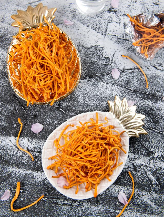冬虫夏草は中国の伝統的な貴重な漢方薬で、免疫機能の調整、抗腫瘍、抗疲労など様々な効果がある。冬虫夏草の花は、実は冬虫夏草を人工栽培したもので、その効果は冬虫夏草と似ており、肺を補い、腎を補い、肝を保護し滋養する作用があり、肺と腎の不足による咳や息切れを治療します。また、現代医学では、ホルモンバランスを整え、免疫力を高める効果も発見されており、かなり多くの強壮効果があり、肝腎陰虚の人に最も適している。