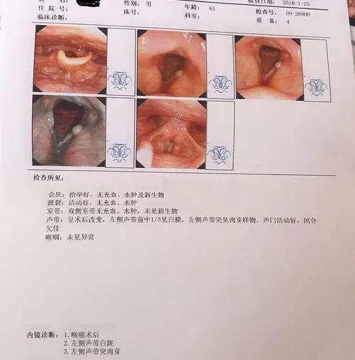 1.外科的治療:これには外科的炭酸ガスレーザー治療、喉頭部分切除術、喉頭亜全摘術、喉頭全摘術が含まれるが、手術治療計画は所見の病期分類に基づいて作成される。