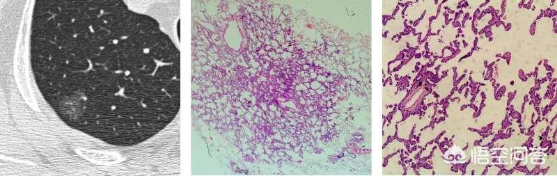2.最初は癌ではない小さな肺結節がある。むしろ、異型腺腫性過形成などで、徐々に浸潤性腺がんに進展するもので、これは地上のガラス結節で最もよく見られる。