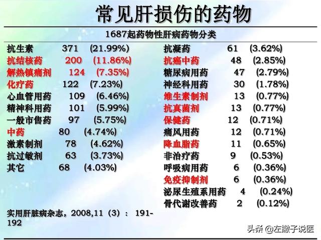 関連情報によると、中国では急性肝炎で入院した患者の約10%が薬物性肝炎であり、中国で一般的な肝障害治療薬は主に抗生物質、解熱鎮痛薬、抗結核薬、漢方薬、抗腫瘍薬などである。