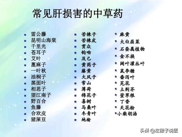 6.漢方薬にも肝障害がある多くの人は、西洋医学の説明書には様々な副作用がびっしりと記載されている、あるいは漢方薬は副作用がなく良い薬だと言う。しかし、実際にはそうではなく、良い薬で漢方薬の多くは命を救うものであり、「殺す」ものではありません。一般的に漢方薬に肝臓の損傷も非常に多くあります:レイGongteng、プー黄、生姜、楽しまアサリ粉、黄デュオ、何Shouwu、ルバーブ、Zeの謝ディ、黄色のハーブ、倉二子、白い果実、半夏、ニーム、コリアンダーなど。