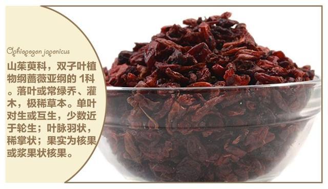 オフィオポゴンは甘・寒・湿で、陰を養い、津液を生じ、乾を潤し、肺と胃の陰を清め養うのによい。苦くて冷たく、熱を取り除き、心を清め、煩悩を取り除くことができる。肝臓と腎臓の陰虚、胸部と心窩部難産の血液の乾燥とガスの憂鬱、酸嚥下と嘔吐苦い、喉の乾燥と口の乾燥などの治療;体液を増やすスープ(清「温病」)、舞茸東連心(約30g)は肺を養って体液を増やし、津液は腸を潤し、玄仙は陰の滋養の増強と乾燥を潤し、腸と下剤を潤滑に組み合わせ、熱邪が体液を傷害して便秘の治療。中医学理論の指導の下で、マイタケは虚証による咳や喘息、痰のからんだ空咳、口渇、不穏、不眠、体液消耗による腸の乾燥などを治療する。必須薬物の便秘。