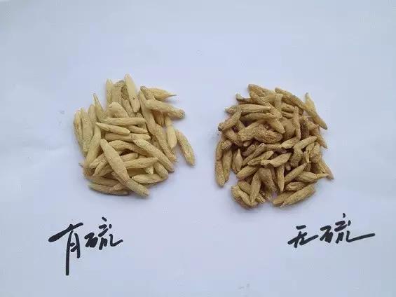 ハングmaitongおよび四川maitongは主要な相違次のとおりである: 前者の脂肪質の穀物および成長、色の黄色および白、ガスの芳香、好みの甘く、わずかに苦い、粘着性がある噛むこと; 一方、四川のmaitongはより薄く、より短く、灰色がかった白、より悪い芳香、非粘着性がある噛むことである。両方とも本物、浙江の生産への慣習は優秀である。