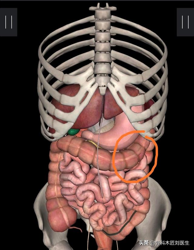 人体の解剖学的位置から見て、腹部中央、つまり臍の周囲にある臓器は、主に回腸、十二指腸、脱腸した胃と横行結腸、尿管、大網、腹部大動脈、左腎臓である。