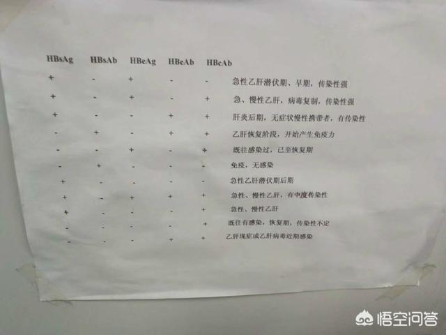 5つの検査結果を分析することで、多くの結論が導き出され、ひいては患者の体内のB型肝炎の現状を理解することにつながる。以下は、私のインターン時代にベッドサイドに貼ってあったシートである。