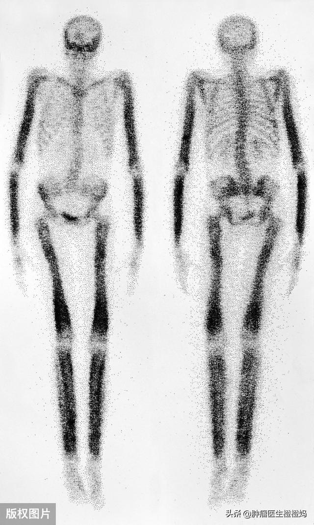 第二に、検査の結果に基づいている。癌の骨転移は、画像上、造骨性または溶骨性破壊として現れる。これは通常の骨病変とは大きく異なります。臨床的には、骨転移の有無を判断するために骨シンチを用いるのが一般的です。👆👆👆上图中,特别'黑'的地方可能就是骨转移!もちろん、他の検査で原発巣が見つからなければ、医師は骨転移が疑われるこの部位の骨組織の病理検査を選択することもあります。ひとつは本当に悪性腫瘍の骨転移なのかを判断すること、もうひとつは病理染色によってがん細胞がどこから発生したのかを判断することです。