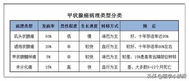 しかし、いずれにしても甲状腺癌は比較的軽症の悪性腫瘍である。病理組織学的分類では乳頭癌が甲状腺癌患者の大部分を占め、甲状腺癌の中では最も軽症で予後も良好です。通常、適切な関連治療を行えば、死亡率は非常に低くなります。私の師匠が、"私は何十年も病理をやっているが、甲状腺乳頭癌で死んでいく患者をあまり見たことがない!"と言ったことがある。このことからも、甲状腺乳頭癌の死亡率はかなり低いことがわかります。