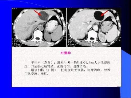 肝嚢胞は臨床でよくみられる肝疾患の一つであり、通常、患者には特異的な臨床症状はなく、ほとんどの患者は超音波検査やその他の検査によって身体診察時に発見されるだけであり、画像に症状が現れる。多発性肝嚢胞は画像検査によって、有害でない場合もあれば有害な場合もある。