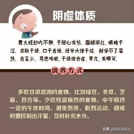 夜中に手足の中心が熱くなるのも、陰虚体質が原因かもしれない。陰虚火体質の人は、体の内部の熱がより十分であり、通常の生活は、より多くの熱を恐れて、夜に手足の熱の心が表示されます。陰虚体のように、通常、常に乾燥した口、乾燥肌、特に乾燥便、より多くの目のブヨブヨ、不眠症になりやすく、特にせっかちなどを感じる。それは足の熱い夜の心によって引き起こされる陰虚体であれば、よく体を調整し、足の熱い状況の夜の心は、非常に良い改善することができます。