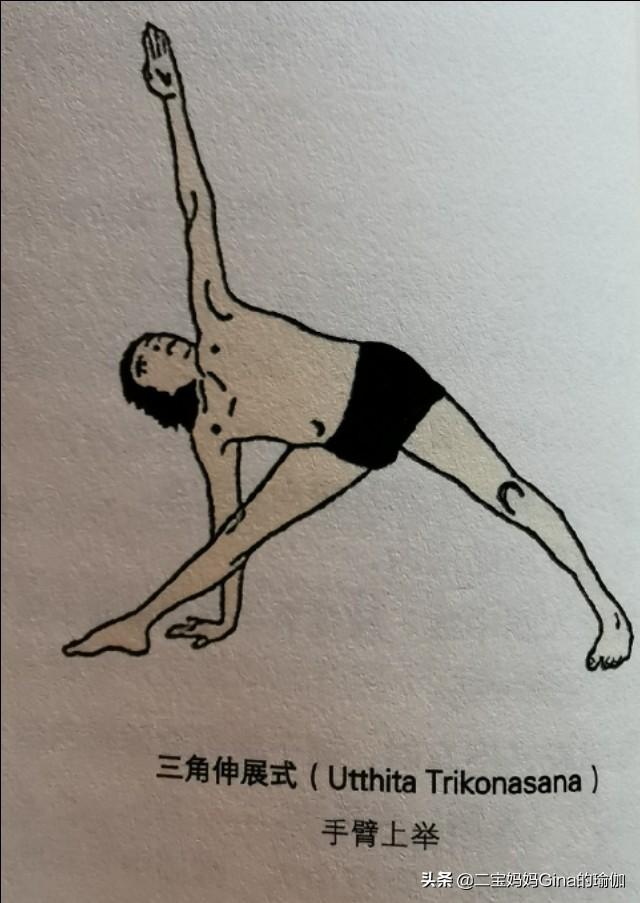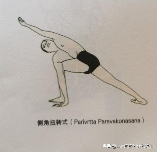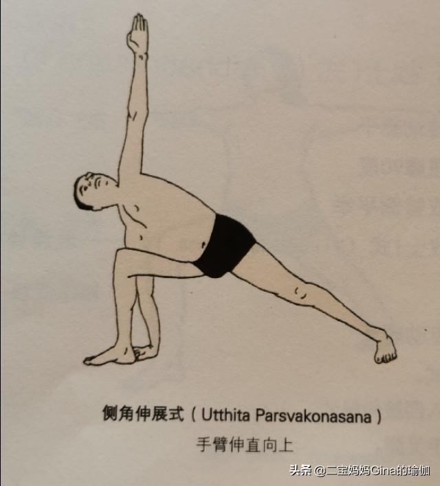 - 右手で体を右に動かし、右足の外側に手を下ろし、左手を上げ、右肩を後ろに下げ、胸を開く。