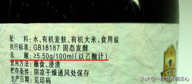 食酢のパッケージには、「総酸度」、「総酸度≧5.50g/100ml(酢酸換算)」と表示されているが、これは食酢の酸度が5.5度であることを示している。