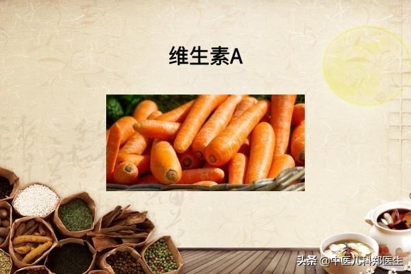 ビタミンA:ビタミンA欠乏症は0~3歳の乳幼児に多く、栄養不良と併発することが多い。ビタミンAの欠乏は、小児のウイルスに対する抵抗力の低下や成長の遅れにつながる。緑黄色野菜や果物にはビタミンAの前駆体であるカロチンが含まれており、体内でビタミンAに変換される。