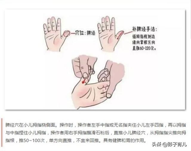 ほとんどの子供にとって、脾臓の運化機能を高めることは、必ずしも薬物療法に頼る必要はなく、食生活を整え、運動量を増やし、推拿(すいな)などの漢方外用療法を適切に取り入れることで、達成できる子供もいる。脾と胃の機能が弱い子供もいるので、脾を補う必要がある場合は、同時に脾を運ぶ方法も取り入れる必要があり、もちろん医師の指導の下で行う必要がある。
