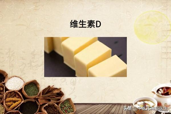 ビタミンD:ビタミンDはカルシウムの吸収を助け、骨の石灰化と骨形成を効果的に促進する特別なビタミンである。ビタミンDを多く含む食品には、魚介類、卵、バターなどがあり、乳製品や乳幼児用サプリメントには、一般にビタミンAとともにビタミンDが強化されている。
