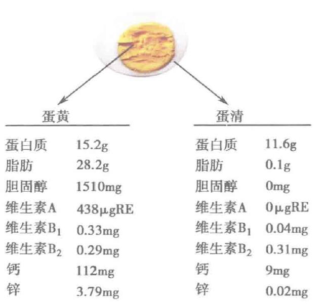 卵黄にはレシチンが多く含まれ、レシチンの代謝産物はアセチルコリンの構成成分であり、アセチルコリンは記憶力の向上と脳組織の変性予防に有益である。また、卵黄の約16%は良質のタンパク質で、記憶力の貯蔵に役立つ。卵黄にはリン、カルシウムも豊富に含まれている。
