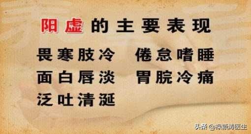 したがって、人体の陽の気の不足を持っているとき、それは白い寒さ、胃や腹部の冷たい痛み、下痢や希薄、舌淡い苔の白の顔に見ることができる、パルスが遅いか、またはタイトな、このような固体の寒さの証拠の性能として。長期的な病気は、人体の陽の気の不足は、冷たい手足の寒さ、疲労の恐怖を見ることができるときに虚偽である横たわって、自己発汗、パルス小宇宙と欠乏寒さの証拠の他の症状。