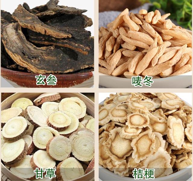 玄神と麦門冬を各4.5グラム、プラティコドノプシスを3グラム、生の甘草を1.5グラム。これら4つの材料を小粒に切り、魔法瓶のカップに熱湯を入れて15分煮出し、お茶として飲む。