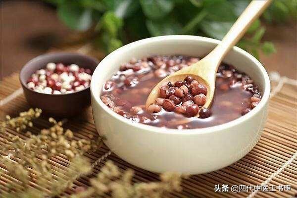 小豆と麦の水。胃腸によく、浮腫を抑え、脾を強めて胃に効き、長く服用すると体が軽くなり、気にも効く。湿邪を取り除くのに非常に便利で実用的な食事療法である。黄芩と小豆は湿を取り除くのに非常に良い効果がある。大麦を炒める。水は小豆と一緒に煮ることができる。小豆に置き換えると、湿気取りの効果が高くなる。大麦の方が寒いので女性は月経中に摂取してはならない