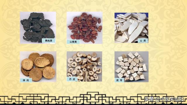 - 六味地黄丸は六種類の薬物から構成される。すなわち、レーマンエ・プラエパラタ根茎、ダイオウコレア根茎、トウニン、茯苓、ゼドアリア、ムダンパイである。処方中、最も重要な成分はRhix Rehmanniae Praeparataで、陰を養い、血を養い、腎水を補う。 李東源は『脾胃論』の中で、「量の多い者が王、力の多い者が王、病を主る者が王」と述べている。熟地が最大量、力が強い、王薬の処方にとって、王薬は薬を調節する大きな役割を果たすことである。張景岳の『医書』には,「熟地黄は性質が平坦で,匂いが清く静かで,五臓の真陰を補うことができる」とあり,主体は肝の強壮の山茱萸と脾の陰の強壮の山芋で,茯苓,附子,丹参を伴う。最初の三味は肝・脾・腎の陰血不足を補う薬で、「三補薬」と呼ばれる。最後の三味は下痢脾湿、下痢腎火、下痢肝熱。これらは「三瀉」と呼ばれる。六味は肝・脾・腎に作用し、三臓の陰虚を補う働きがある。