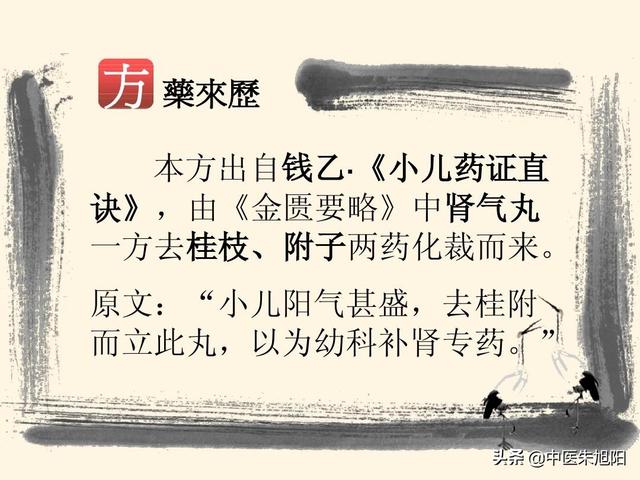 - 宋の時代の有名な医学博士銭毅は小児科医である、彼は「内経」によると、「人が生まれて、最初に本質に、本質の脳髄、骨は乾燥、静脈は陣、腱はちょうど、肉は壁、皮膚はしっかりと長い髪」経典の腎臓、腎臓の生来の起源を決定するために言及生殖発達の主である。小児科では、新生児の立つ、歩く、髪、歯、言葉の発育の遅れは、すべて腎気の生得的な不足と関係がある。 腎の精が失われると、内臓の気血の発育が促されず、その結果、幼い子供の言葉が遅れたり、立ったり歩いたりすることが困難になるため、腎の精を補う必要がある。彼は金室の八味地黄丸を選び、虫垂炎と桂枝を除き、名前を次のように変えた。劉維帝黄丸(六味地黄丸)によって、千年の歴史を持つ名処方が誕生したのである。六味地黄丸が小児科で使われたのはこの時代だけで、内科で雑多な病気に広く使われるようになったのは明清時代になってからである。