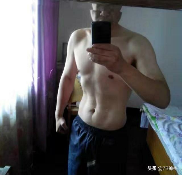 フィットネスのベテランのアドバイスで、食事を高タンパク、低脂肪の肉とベジタリアン料理に変え始めた。半年以上続けた結果、体重は73kgになり、体には腹筋が隠れている。