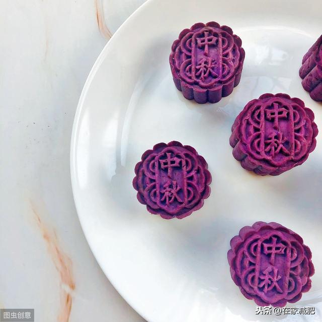 私はよく蒸した紫イモを上の写真のような紫イモ月餅にする!