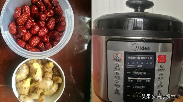 作り方:生姜は皮をむく必要がなく、なつめは核を取り除く必要がなく、きれいに洗い、包丁で生姜を平らにし、みじん切りにし、なつめは2枚に切り、水と一緒に電気圧力鍋に入れ、スープのモードを選択し、通常30分。生姜とナツメのスープ約400ミリリットルを漉し、黒砂糖を加え、熱いうちに一気に飲む。生姜とナツメの残渣は、水700ミリリットルを追加し、再び沸騰、または電気圧力鍋のスープモードを使用し、魔法瓶に生姜とナツメのスープのこの部分は、お茶を飲む日中。