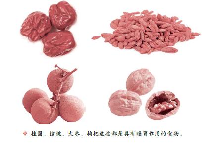 少しは脾胃から始めるべきで、身体のエネルギーは食物からの脾胃の輸送に依存している。だから、もしあなたが冷え性なら、食事では冷たいものを食べないようにし、シナモン、クルミ、ナツメ、クコの実、羊肉のスープなど、消化がよく胃を温める食べ物を選ぶようにしよう。