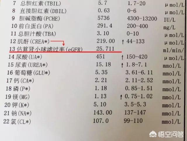 腎機能に異常がある場合、代謝廃棄物を排除することができない、腎機能の評価、クレアチニンの最も一般的に使用される指標につながる。血中クレアチニンの正常値は病院によって異なって測定されます、一般的に言えば、血中クレアチニンの標準の正常値は次のとおりです: 44-133umol/L、血中クレアチニンが133umol/Lより多くあるとき腎臓に損傷があることを意味し、既に腎不全および腎不全があります。(133umol/L以上は炎症障害段階、186umol/Lは腎機能障害段階、451umol/Lは腎不全段階、707umol/L以上の血中クレアチニン値は進行段階(尿毒症)に達したことを示します)。