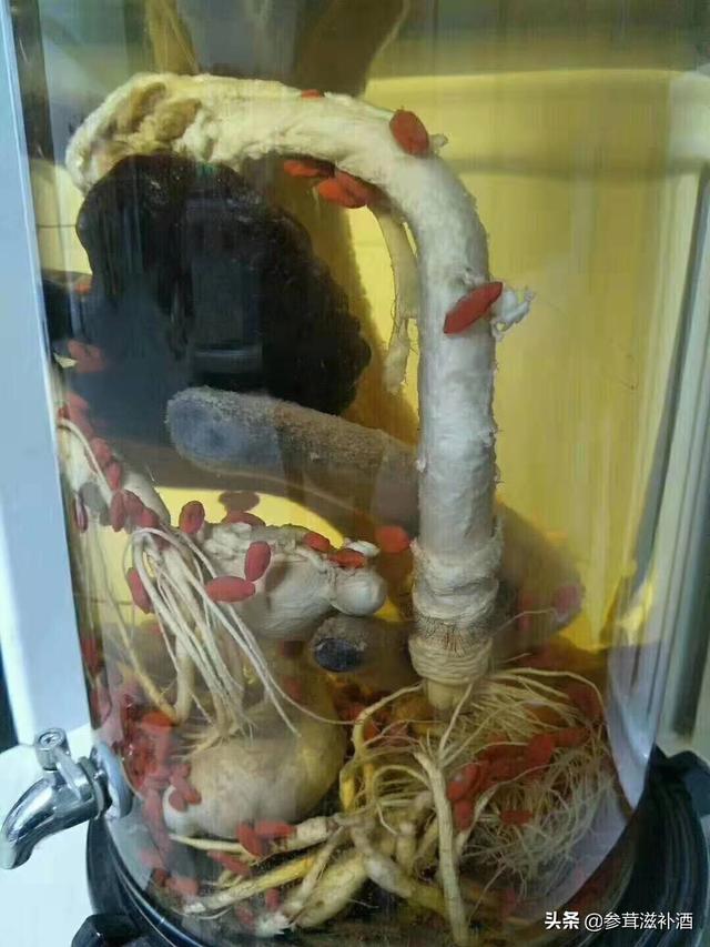 鹿の鞭、鹿の角のビロード、高麗人参、霊芝、クコの実、鹿の角の血などを一緒にワインに浸すと、一度約2年間飲むことができ、ワインは血液に直接有効成分を並べることができ、体全体に有効成分の吸収を非常に助長する。