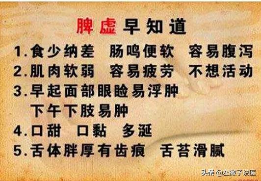 4、下痢、食べ物によって引き起こされる脾陽不足は、消化吸収、便、粘着性、下痢を引き起こすことはできません脾虚の最も典型的な症状である、水分の侵入、緩い便。脾胃は人体の水ポンプのようなもので、脾胃の機能が良くないと、体内の "水湿 "をすぐに送り出す力がなく、時間が経つにつれて、中焦の湿閉塞につながります。中焦の湿閉塞は、疲労、消化不良として現れる。水路の "ポンプマシン "がブロックされているため、別の種類の "ウェット "は、あまりにも多くのボディ "水湿 "を引き起こし、放電がスムーズではありません。