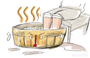2.睡眠を促進する。冬に足を浸した後は、体全体が温かくなり、精神も落ち着くので、睡眠に非常に効果的である。なかなか寝付けない人は、寝る前に15分ほど足を浸けておくと、睡眠を促すことができる。