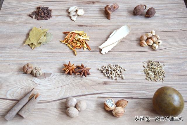 多くの香辛料は漢方薬としても利用でき、胃を開いて脾を目覚めさせ、食を除き、気の停滞を取り除き、瘀血を取り除くというのが一般的な作用であり、料理に適切に用いれば有益である。ただし、気血を補う処方を飲んでいる場合は、香辛料は一時的に避けるべきである。