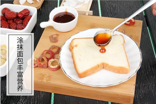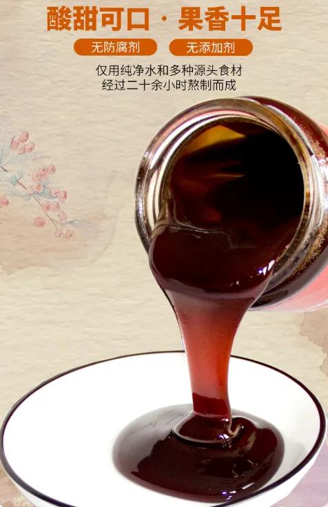 このサンザシ六物ペーストは、サンザシ、麦芽、チーNeijinを持っており、また、山芋、ナツメ、茯苓を追加し、一緒に煎じ薬、ろ過、濃縮、氷砂糖と蜂蜜の香料を追加し、甘酸っぱい、子供が特に飲むのが好きで、直接水に浸したり、ジャムとして、パンに塗抹して食べることができます上に述べた式と同様の成分である。