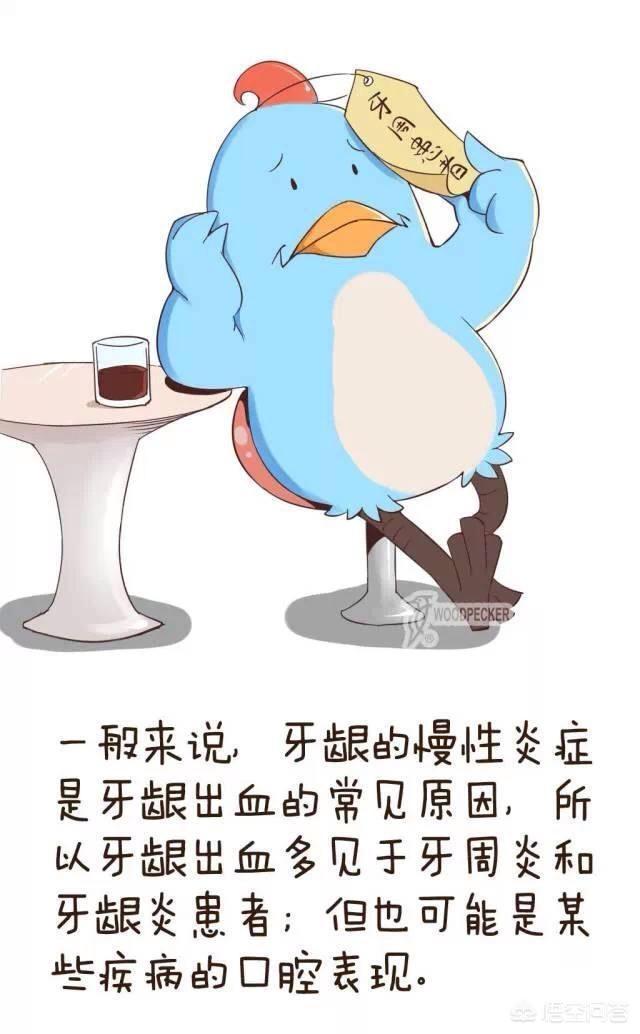 白血病、血友病、血小板減少性紫斑病、再生不良性貧血などの血液の病気は、歯茎から出血しやすいだけでなく、外傷のこぶの中には出血しやすいあざがあり、出血はなかなか止まりません。歯磨きをしている時に歯茎から出血した場合、体の他の部分にも小さな赤い斑点があったり、ちょっとした外傷で出血することがあるので、血液の病気には特に注意が必要です。早めに病院の血液科で検査を受け、早期診断、早期治療が必要です。