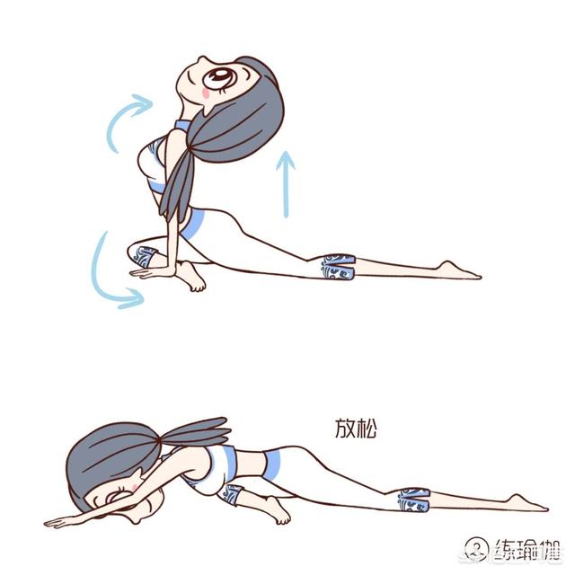 片足鳩王スタイル、今回は少しシンプルに行うことができ、前脚の膝の両側に手をすることができ、腰と背中をまっすぐにしてから、腰と首の筋肉全体をストレッチするためにゆっくりと後方に息を吐き、肩を開き、脚の背面をマットにしっかりと後方に伸ばした。数回呼吸を続けた後、前方に横になってリラックスする。